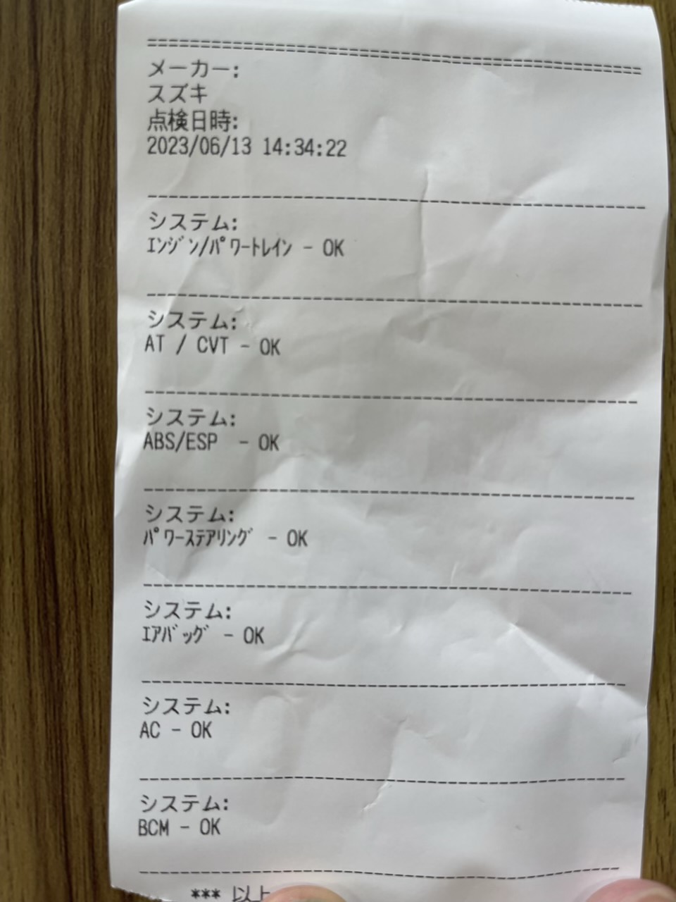 スズキ車を、OBD診断機で、 全ての、項目の、システム点検しました。 結果、全ての、システムで、 異常なく、OK診断でした。