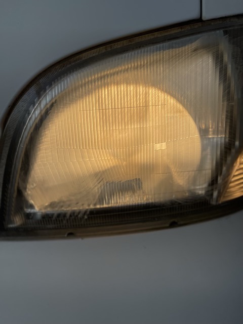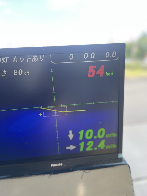 ヘッドライトのレンズが燻んでいた為 明るさが確保出来ずにいた為、 レンズを専用の機械で磨きました。 上(左)側が磨く前の燻んだ状態の ライトの配光と光量です。 下(右)側が磨いて、くすみがとれて 明るさが確保されたライトの 配光と光量です。